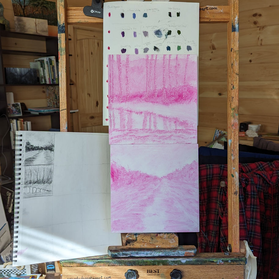 The scene in this painting stopped Amanda in her tracks on the way home from work one January evening. She captured a quick photo, stopped long enough to observe the rich colors and deep atmosphere before heading home to create a sketch. This painting was then developed based on that sketch, her memory of that moment, and the photo reference.
